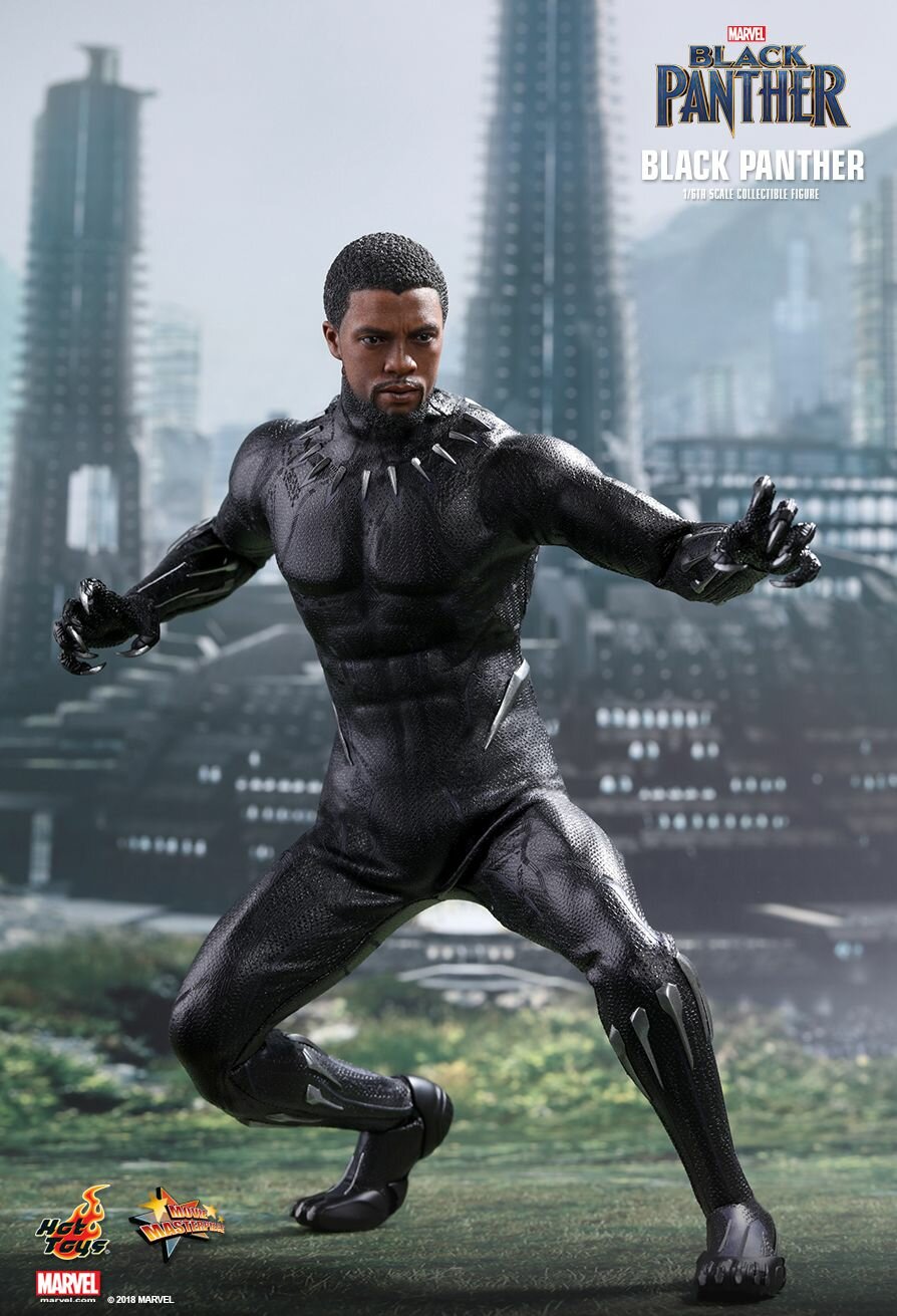 Hot Toys memanfaatkan hype dari Black Panther dengan baik dan berusaha sebaik mungkin untuk membuat action figure yang akurat. Mainan ini dilengkapi dengan aksen LED di kostumnya sehingga bisa menyala. Selain itu, kelebihan lainnya adalah bentuk badan yang menonjolkan otot-otot T'Challa dan ukiran wajah yang sangat mirip dengan aslinya. Koleksi ini dijual satu set dengan backdrop serta figure stand seperti di film dan 2 buah kepala - satu dengan topeng, satu lagi wajah dari Boseman.